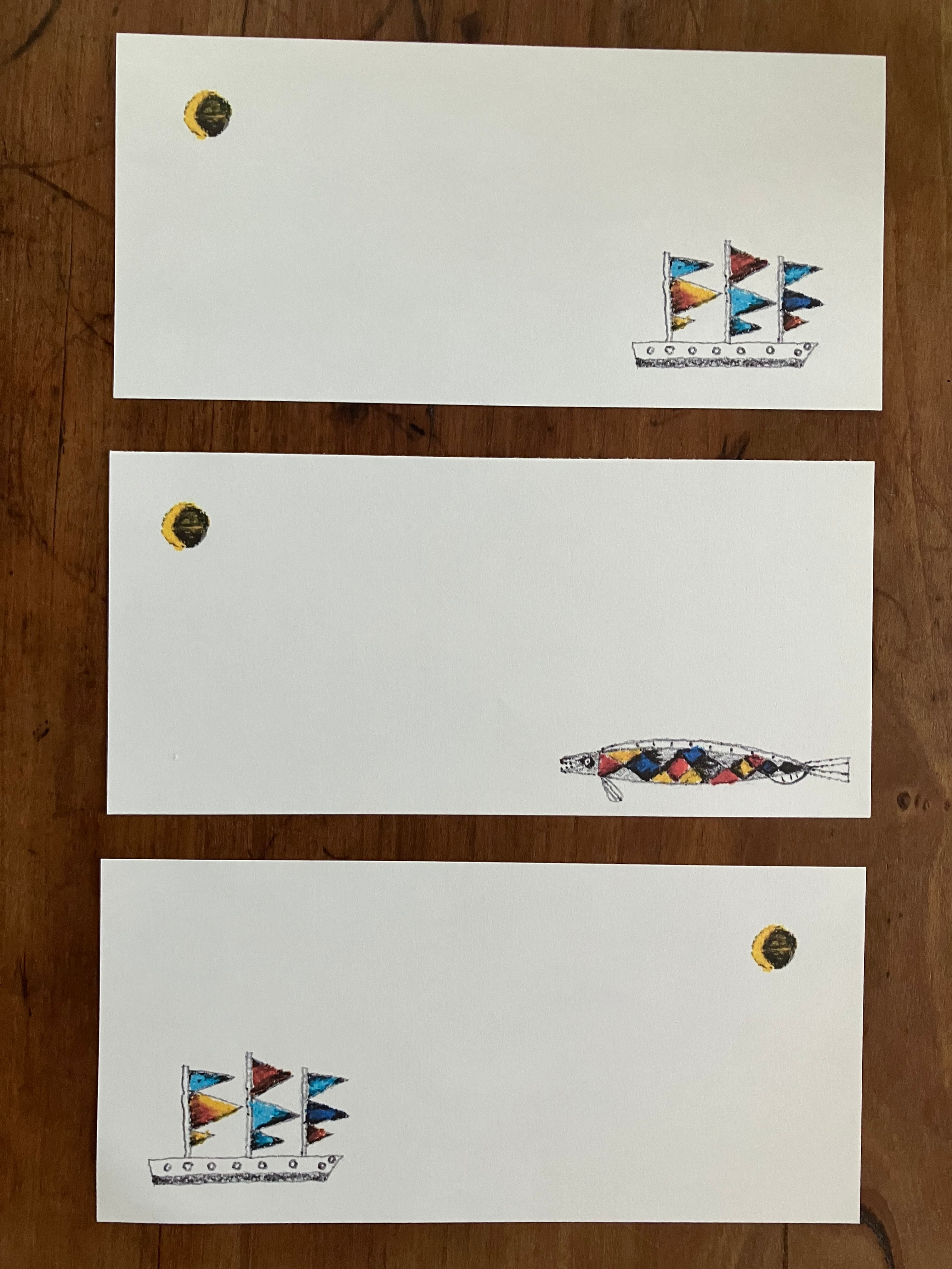 船と月と魚、月夜の海をイメージした少し大人な雰囲気の一筆箋です。ちょっとしたメッセージや、手土産などに添えるなど便利にお使い頂けます。