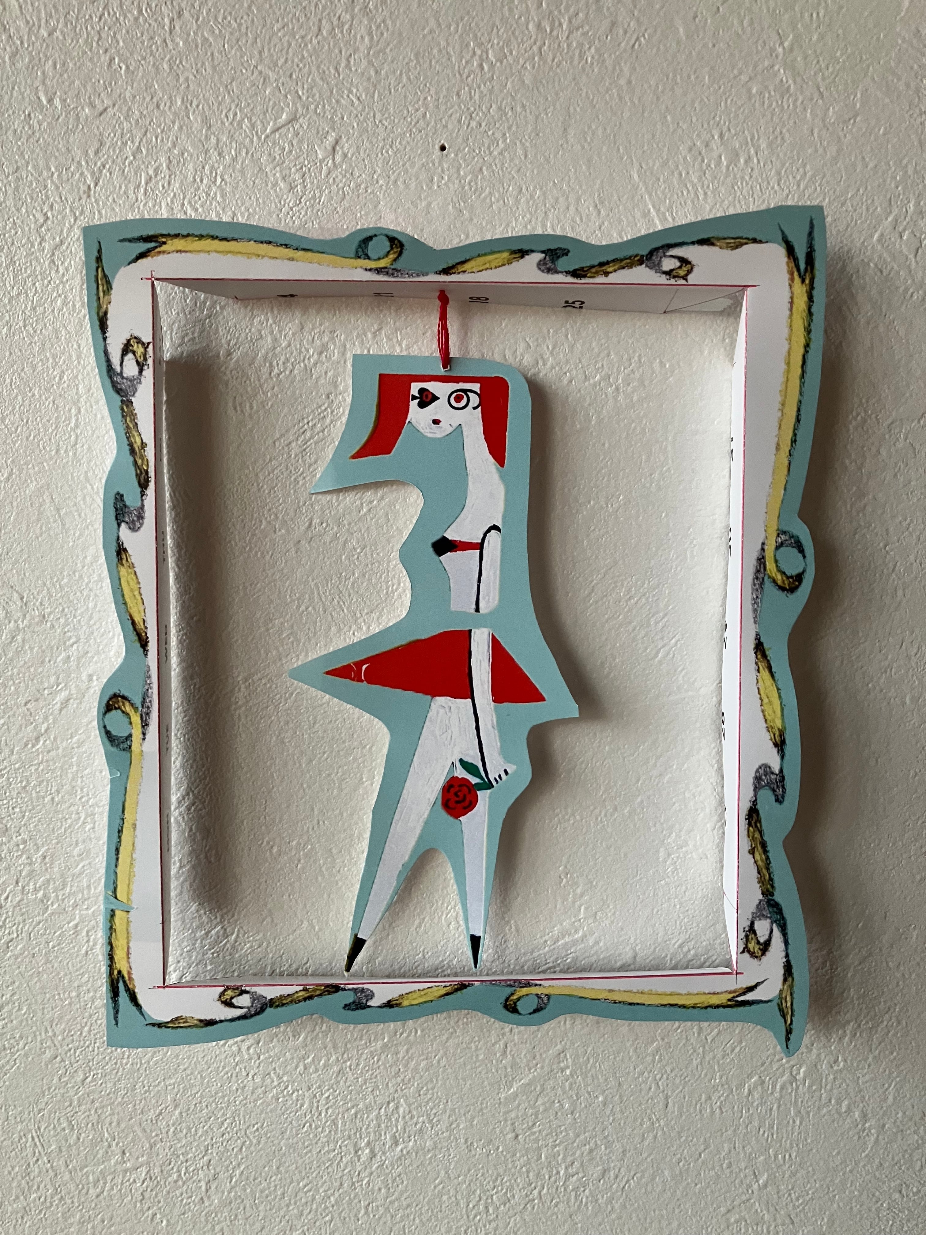 トランプを切って作ったモチーフと、クレヨンで描いた枠飾りをカレンダーにしました